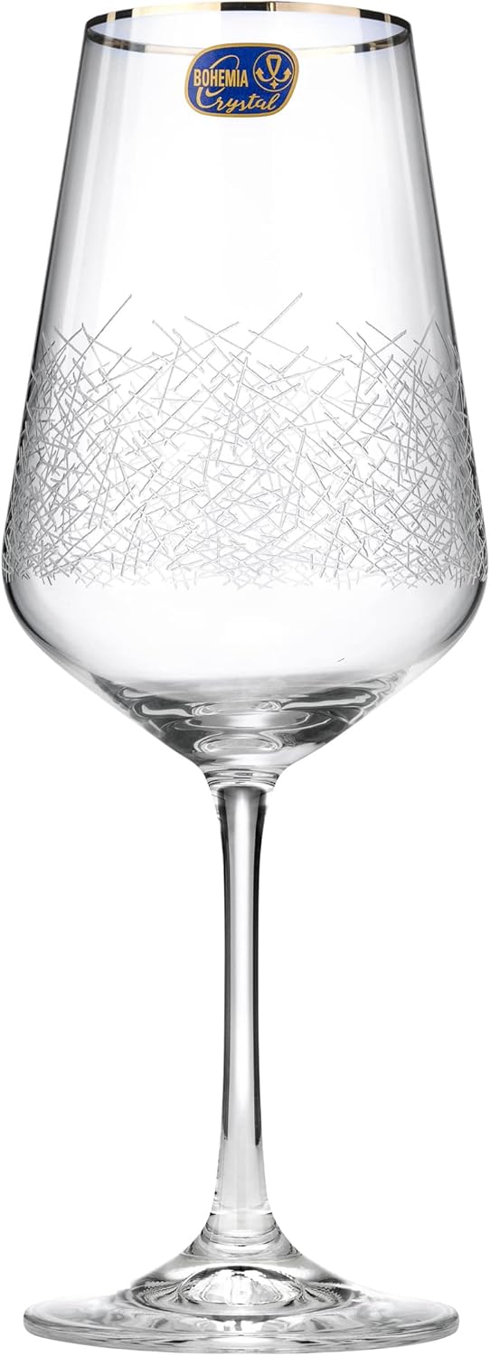 This elegant and modern Sandra frost glassware is a magnificent marriage of style, hand craftsmanship, and attention to detail and design. Each individual glass is hand embellished and crafted in platinum create a delicate and unique look. The Design looks very premium. These durable goblets add a touch of elegance to your barware collection, table setting, or party. The stem of the glass has a delicate design that holds and reflects light beautifully. The base of the glass has a Platinum rim border. This set of 6 sets is crafted for every type of white wine. Each glass holds 15 ounces. You can use this glassware on any occasion.๐ ๐๐๐๐๐๐๐:Premium Quality Set of 6 Glass SetMaterial: Durable CrystalCapacity: 15 ozIdeal for home and professional usePlatinum RingsHand Wash only.Well-finished decoration object