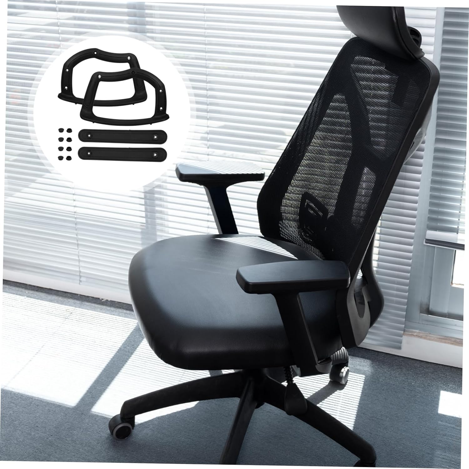 Package List 1 x pair of chair armrests Characteristics -Quick setup: easy to install on a wide range of office chairs, allowing for a fast and straightforward setup process office chair arm replacement -Stylish appearance: boasts a sleek and modern design that adds a touch of elegance to any office setting chair armrest covers -Color:Black arm rest covers for office chair -Ergonomic support: delivers ergonomic support to reduce strain on your back and waist, better posture and productivity office chair parts -Size:40.00X25.00X5.60cm/15.72X9.82X2.20in office arm chair covers -Material:Plastic arm covers for chairs -Versatile: features practical cater to various user preferences and requirements office chair arm covers -Longlasting durability: constructed with materials that withstand prolonged use, ensuring reliability and longevity arm rest covers for chairGoods Descriptionarm covers for chairs These arm rests for chairs are made from wear-resistant materials, ensuring they withstand daily use.desk chair arm covers The office chair armrests are essential for maintaining the comfort and functionality of your office chair.arm pads for office chairs The ergonomic chair arm rest design supports your arms during long working hours