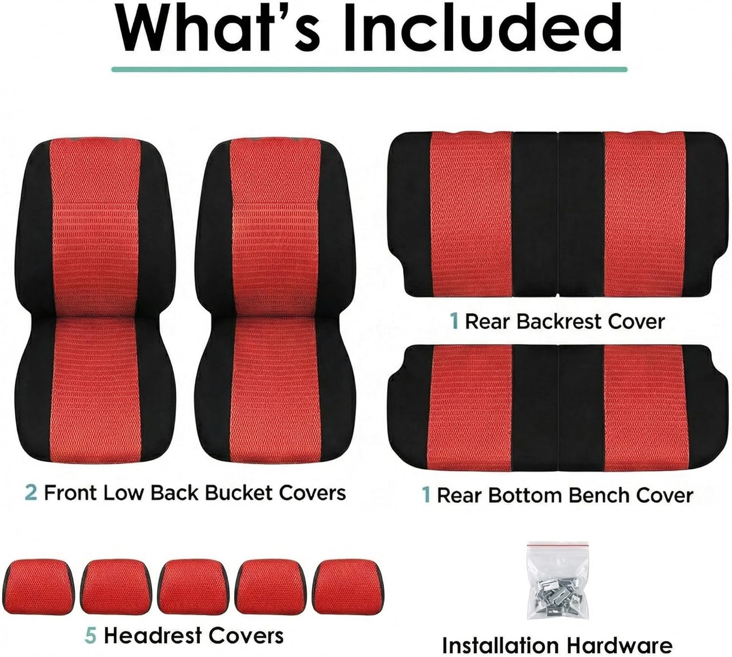 FH Group got you covered! Our full set of premium cloth car seat covers not only provide the best protection for your car's upholstery against any type of mess but they also enhance the looks of your car's interior. No need to worry anymore about spills, stains, mud, or anything damaging your original car seats because this car seat protector got your back. This full set of car seat covers includes two front low back seat covers, which are compatible with most sedans, SUVs, and vansโ seats with removable headrests only. Our rear seat covers are fully compatible with 50/50, 40/60, or 60/40 split rear benches or longer benches. The cover features 3 zippers in the backrest AND bottom, and extra mesh pieces so you can move the rear seat freely or use the middle armrests and get full protection. We understand messes happen, thatโs why these washable seat covers for cars are convenient for any type of driver. We offer automotive seat covers in numerous fabrics, colors, and designs, so you can easily find the seat cover for cars that fits your style the most. We have car seat covers for women, for men and for everyone! FH Group car seat covers are a great car interior accessory for your vehicle. We have it all: car seat covers for SUV, car seat covers for autos, car seat covers for vans, you name it! Add a modern twist to your vehicle's interior with our sleek Modernistic seat covers. The sharp lines and angles in this design command attention, and the pop of color will make sure all eyes are on you. Our high quality fabric is backed by 3mm of foam padding to disperse heat and keep you cool and comfortable, even in the hottest temperatures.