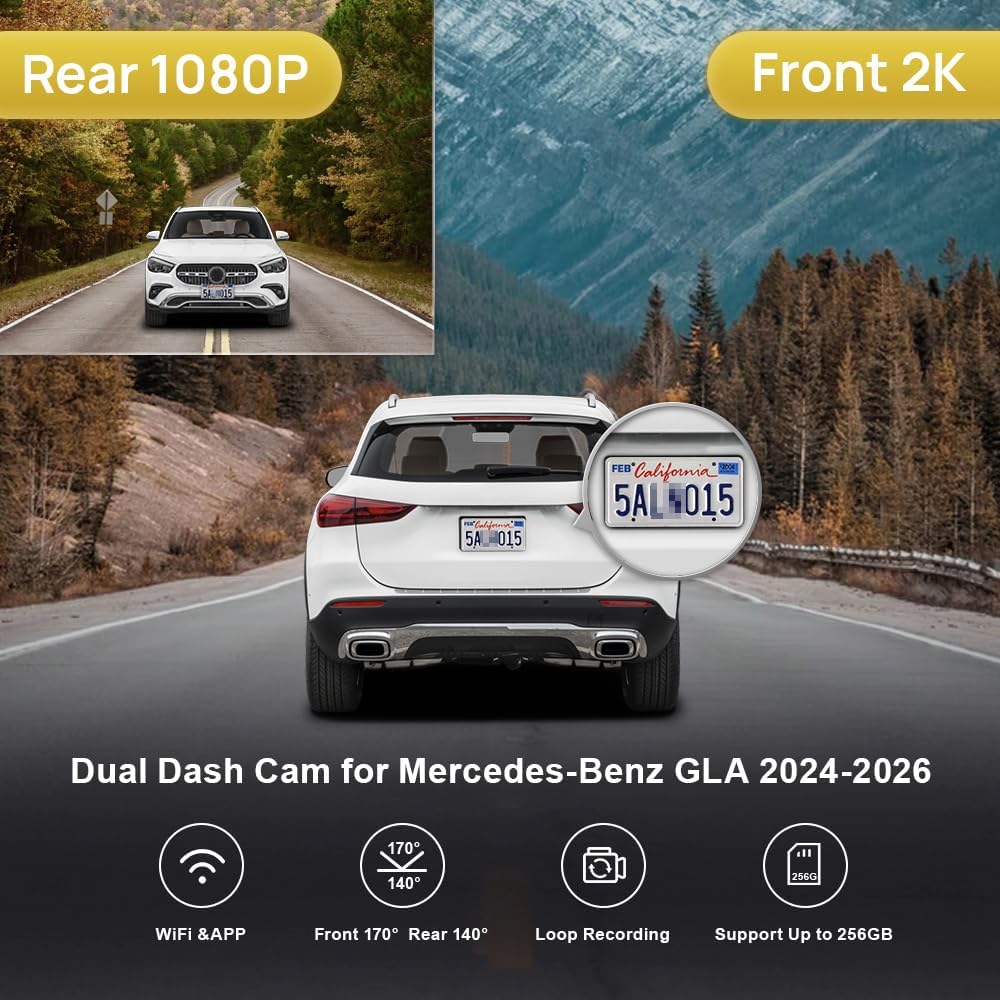 Specification: Brand: FITCAMX Compatible Vehicle Style: Mercedes-Benz GLA 2024-2026 (HD2-6669) CPU: Novatek APP: Android and iOS Shell Material: PC+ABS Aperture: f/1.6 WiFi: 2.4Ghz Video Resolution: Front 1440P, Rear 1080P What's in the box: 1* 2K Dual Dash Cam 1* Cable 1* User Manual 1* 64GB Memory Card 1* Removal pry tool NOTE: Fitcamx dash cams are designed for specific vechile models, looking just like OEM factory installed! Please contact our customer service for more details if any questions.