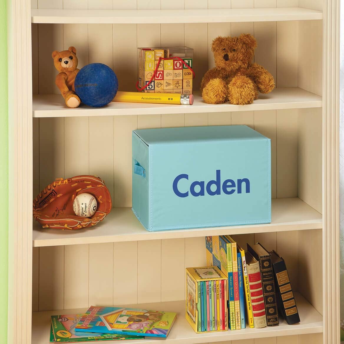 Multipurpose toy chest encourages imaginative play and offers a quick cleanup solution when playtime is done! Toy bin is perfect for keeping toys within reach but still out of the way. Sturdy storage bin provides ample space to organize toys, books, clothes, shoes, craft supplies and other clutter. Classic design features a secure lid with hook-and-loop closure. Simply unfold the lid of the toy chest to reveal a colorful play mat. Toy mat features a windy road among trees and ponds, all leading up to a 6 3/4" x 3 3/4" opening to the "garage" for safe keeping. Fold-out mat can be configured in multiple ways for endless hours of fun. Foldable toy chest is easy to setup and collapses for space-saving storage when not in use. Lightweight chest features double handles in a strong woven material, making it easy to move the storage box from room to room. Storage bin makes a wonderful gift on its own or as basket filled with additional toys for a birthday, Christmas or Easter. Make the magical storage box extra special by adding the name of one lucky child. Specify name, limit 12 letters. Non-woven sturdy fabric/cardboard. Wipe clean with damp cloth as needed. 10" x 15" x 9 3/4". Toys cars NOT included. Please note: At this time, we are only able to personalize characters from the English keyboard.