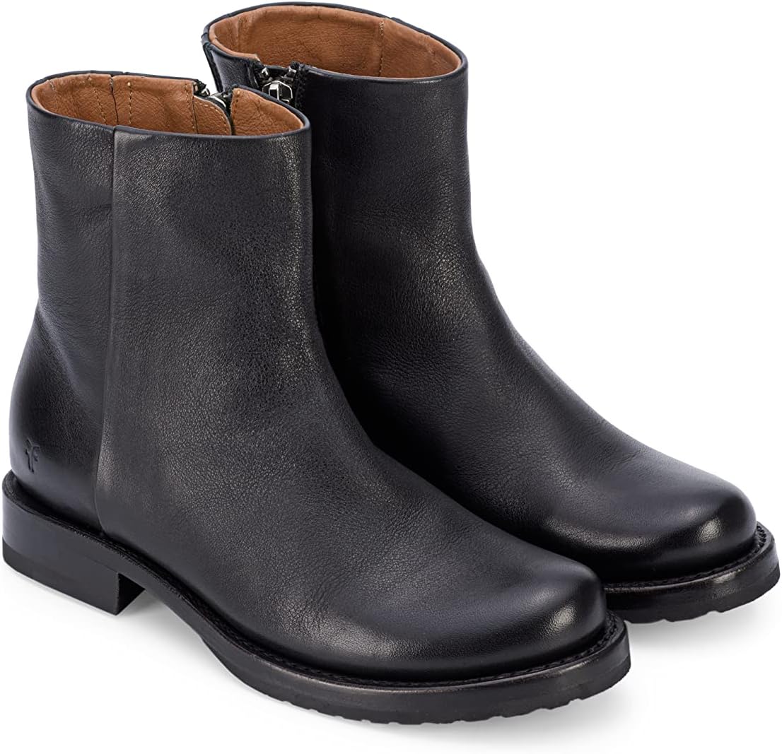 The Frye Company For more than 153 years, Frye craftsmen have been dedicated to the art of shoemaking, creating modern patterns, discovering materials and even inventing machinery. Rooted in authentic American heritage, The Frye Company uses the best leathers, designs and innovations in the pursuit of timeless, artisanal style. Frye boots were worn by soldiers on both sides of America's Civil War, soldiers in the Spanish-American war, and by Teddy Roosevelt and his Rough Riders. When homesteading drew adventurous New England families to the West during the mid and late 1800's many of the pioneers wore Frye Boots for the long journey. Today Frye remains true to its roots with its line of heritage boots, but continues to innovate as it introduces chic new handbags, pumps, and sandals to its collection. Frye’s mission, to make iconic leather goods that endure, has remained unchanged throughout its storied history. Veronica Inside Zip Set on a manageable heel, these Goodyear-welted ankle booties are crafted from premium leather featuring a classic, authentic silhouette. Because they have a straight cut along the topline and an inside zipper, they're ideal for infusing modern Western style into your look. The Frye Company is the oldest continuously operated shoe company in the United States. Founded in 1863 by John A. Frye, a well-to-do shoemaker from England, and family-run until 1945, Frye products have a long and illustrious history. Frye boots were worn by soldiers on both sides of America's Civil War, soldiers in the Spanish-American war, and by Teddy Roosevelt and his Rough Riders. When home-steading drew adventurous New England families to the West during the mid and late 1800's many of the pioneers wore Frye Boots for the long journey. Today Frye remains true to its roots with its line of heritage boots, but continues to innovate as it introduces chic new handbags, pumps, and sandals to its collection.