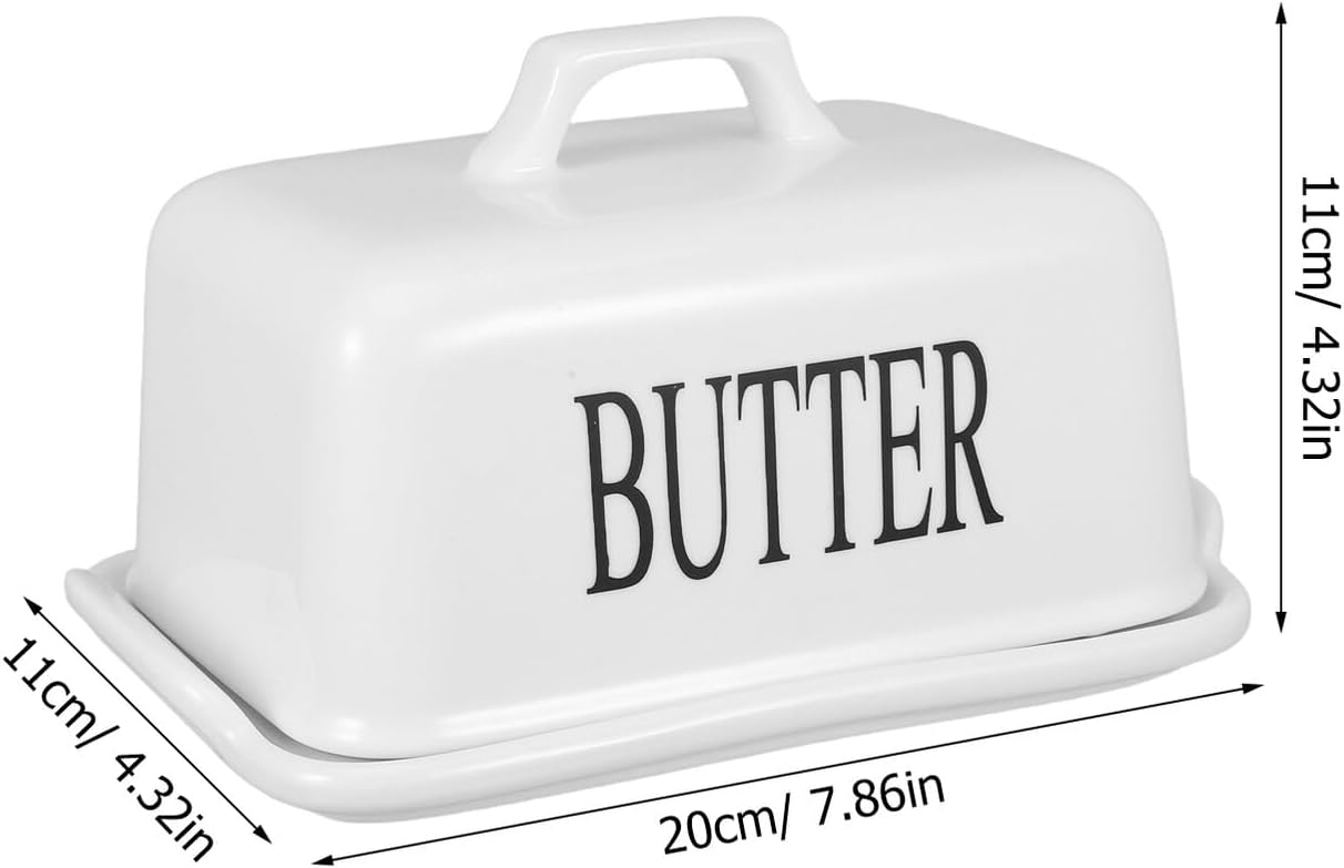 Package Include 1 x butter dish Features -great for all dining settings: an ideal choice for enjoying delicious meals, suitable for homes, restaurants, and various dining settings, making every meal more enjoyable european butter dish with lid. -hardwearing ceramic craftsmanship: enhance your kitchen's aesthetic with our beautifully crafted ceramic butter dish, adding a touch of elegance to your dining experience white butter dish. -Color:White -Product Info:Butter dish -Size:20.00X11.00X11.00cm/7.86X4.32X4.32in -Lid for food preservation: the included lid your food stays fresh, preventing spoilage and extending the shelf life of your ingredients butter dish. -Multifunctional container: ideal for butter and cheese, this versatile container is also great for storing other condiments and small snacks, offering great practicality thanksgiving butter dish. -Generous storage capacity: with its large capacity, this storage box can hold various ingredients, making kitchen organization easier and saving valuable space sealing butter dish. -Material:CeramicsGoods Descriptionbutter dish Ideal for both everyday use and special occasions.butter keeper Its timeless design makes it a great fit for any kitchen decor, while the practical functionality that your butter is always at hand.ceramic dishes Add a touch of elegance to your kitchen with this vintage butter dish.covered butter dish The ceramic construction and airtight lid keep your butter fresh and ready to use
