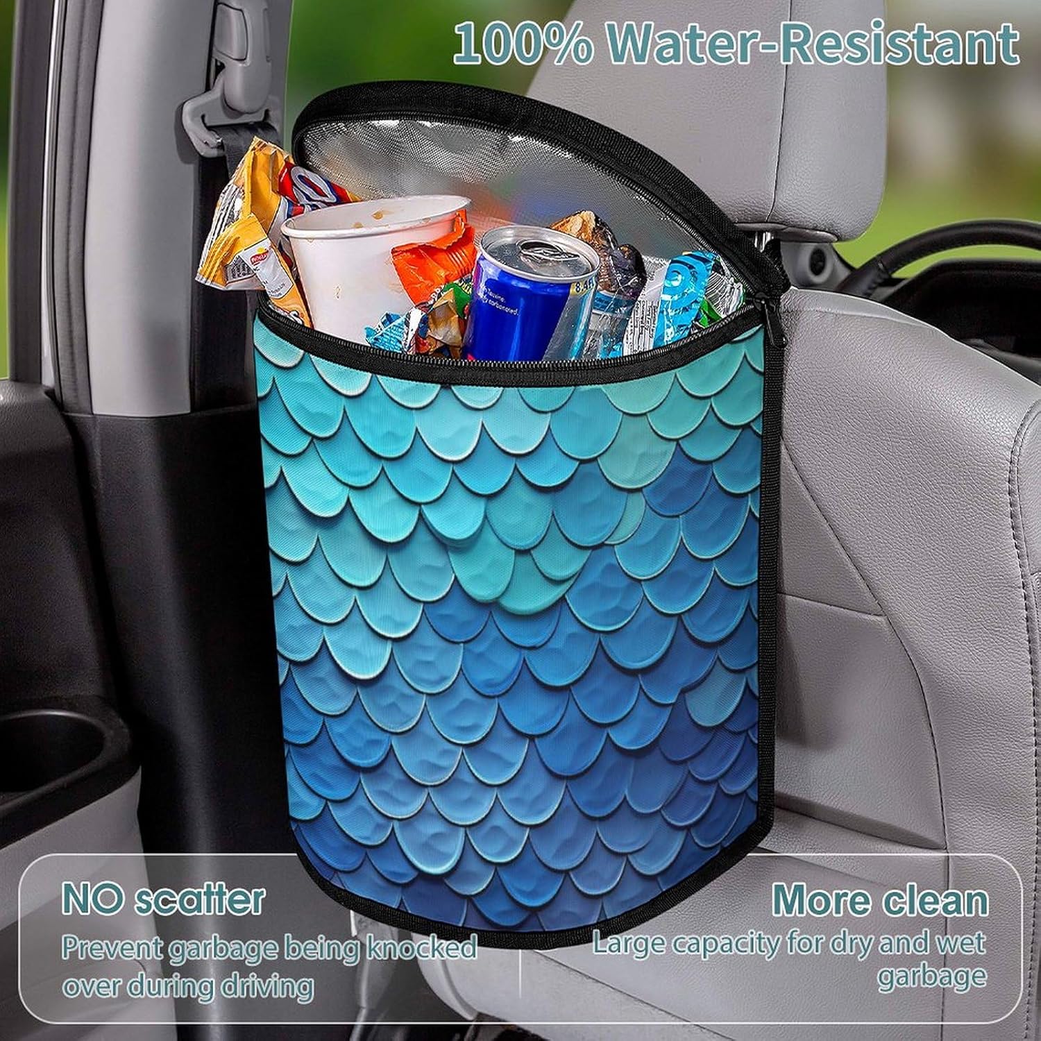 This stylish garbage bag storage bag features a built-in waterproof and leak-proof lining,effectively protecting the trash can and your car from beverage and grease stainsThe appearance design of car trash cans with lids is becoming more and more beautiful and fashionable. It is not only practical, but also adds a sense of decoration to the car