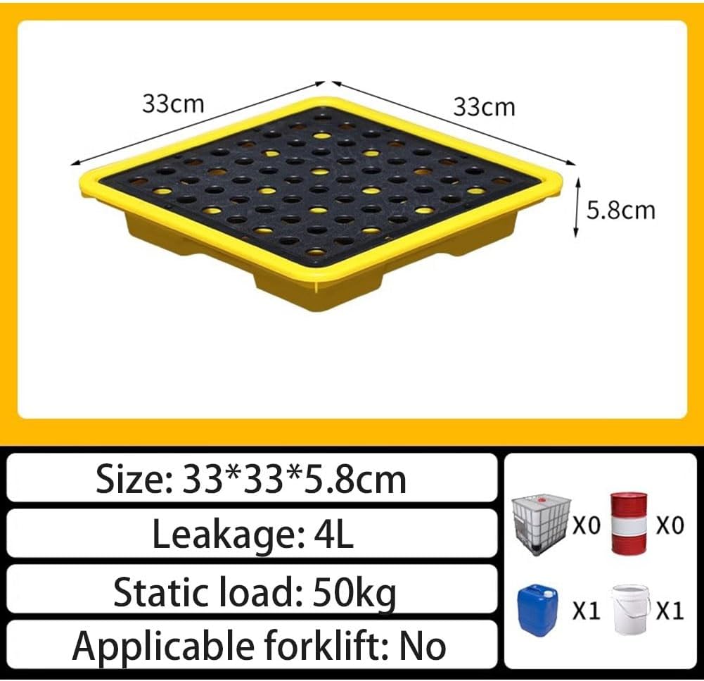 Spill-Proof Modular Platform - Spill-Proof Containment Basin - Load-Bearing Containment Tray No Leaks, No Worries! The seamless construction of this spill-proof containment pallet eliminates leaks to protect against unwanted spills and helps avoid potential fines, while the removable top grill makes cleaning easy. Suitable for various industrial parks, warehouses, aquaculture water storage and more. PRODUCT DETAILS Name: Spill-Proof Modular Platform/Plastic Tray Material: Polyethylene Product Size: Length x Width x Thickness Color: Yellow + Black (The colors are eye-catching and not easy to fade) Size: We have 16 sizes for you to choose, select the size you need Features: Waterproof, Wear-Resistant, Cold-Resistant, Strong Bearing Capacity Additional Features: Removable, Tilt-Up, Lift-Up, Storage, Push-Pull, Hydraulic Load-Bearing Capacity: Each size of the pallet has a different load-bearing capacity, the larger the size, the greater the load-bearing capacity. PACKAGE CONTENTS Anti-spill containment platform x 1