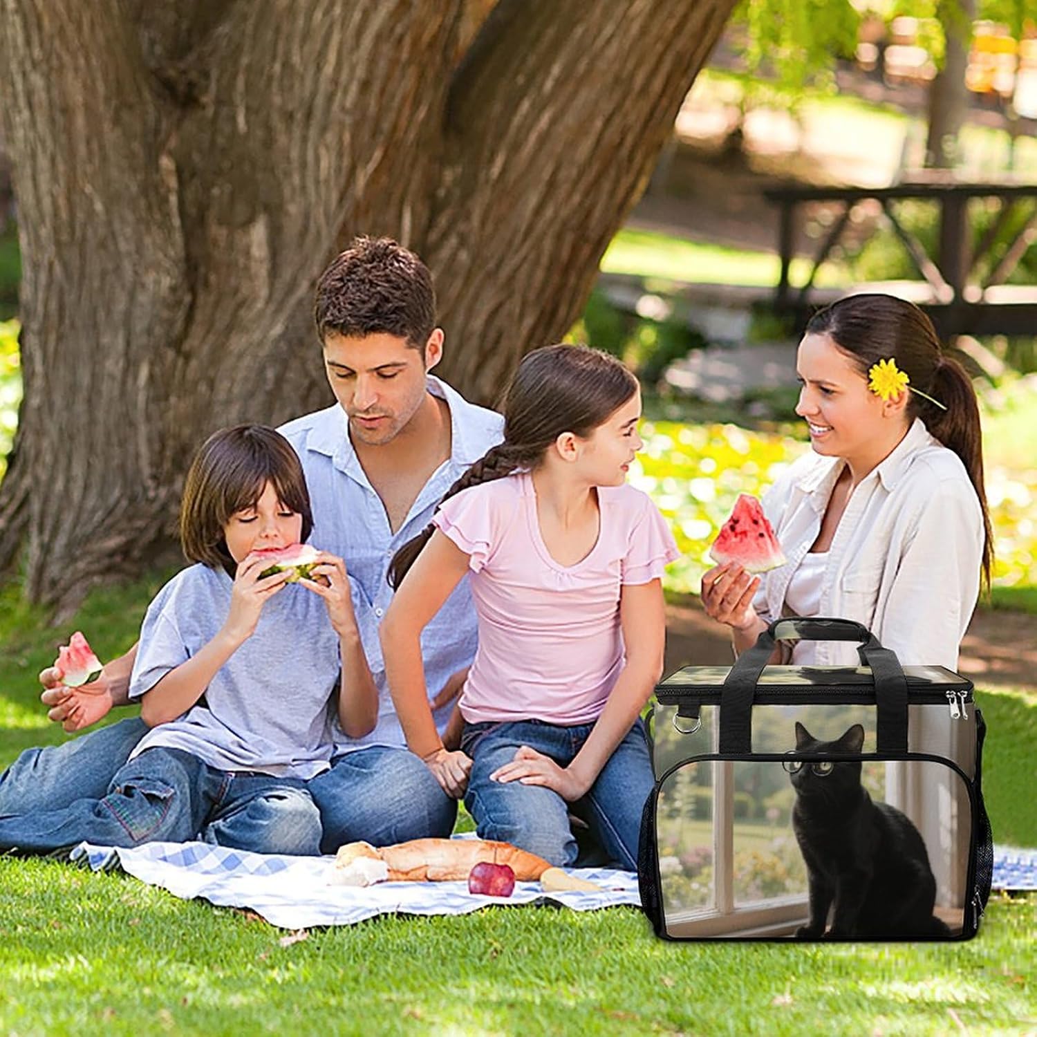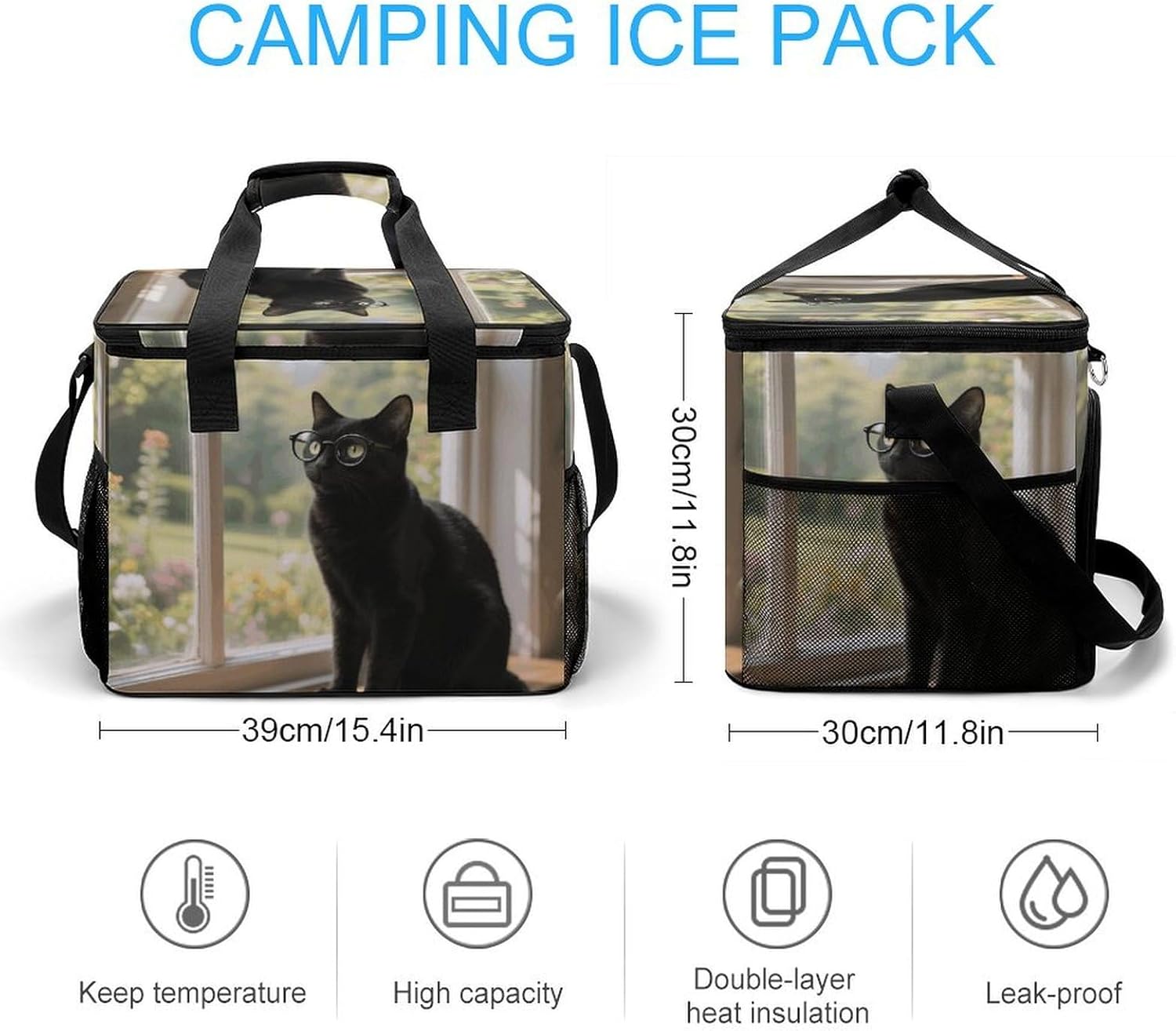 Take Your Meals Anywhere with Black Cat Glasses Grocery BagsFood Container Carrier Oxford Fabric Picnic Bag Heat Retaining Food Bag Camping Cooler BBQ Accessories Cute Picnic Bag with Pockets Insulated Food Bag for Work Insulated Lunch Tote Bag Camping BagTemperature Control That WorksThe upgraded aluminum foil lining creates an effective thermal barrier. Your drinks stay refreshingly cold, and your hot dishes maintain their warmth for hours. No more lukewarm meals during outdoor outings.Thoughtful Storage DesignTwo side mesh pockets - Perfect for water bottles or umbrellasFront zippered pocket - Keeps keys, phone, or condiments organizedInternal mesh pocket - Stores utensils, napkins, and small essentialsMain compartment - Spacious enough for food containers and snacksBuilt for Daily AdventuresConstructed from high-density oxford fabric with reinforced stitching at stress points. The double zippers are sturdy and smooth-operating. Reinforced handles let you carry heavy loads with confidence.Carry Your WayHandles for quick grabbingStands upright for easy packing and accessPerfect For:Picnics in the parkBeach days and pool partiesCamping and hiking tripsOutdoor concerts and festivalsDaily work lunchesGym and fitness classesRoad trips and travelGrocery shoppingSpecifications:Dimensions: 15.4 x 11.8 x 11.8 inchesMaterial: High-density Oxford fabricLining: Aluminum foil (insulated)Closure: Sturdy double zippersPockets: 2 side mesh, 1 front zipper, 1 internal meshCare: Hand wash or machine wash, do not bleachNote: Food containers and utensils shown in images are not included.