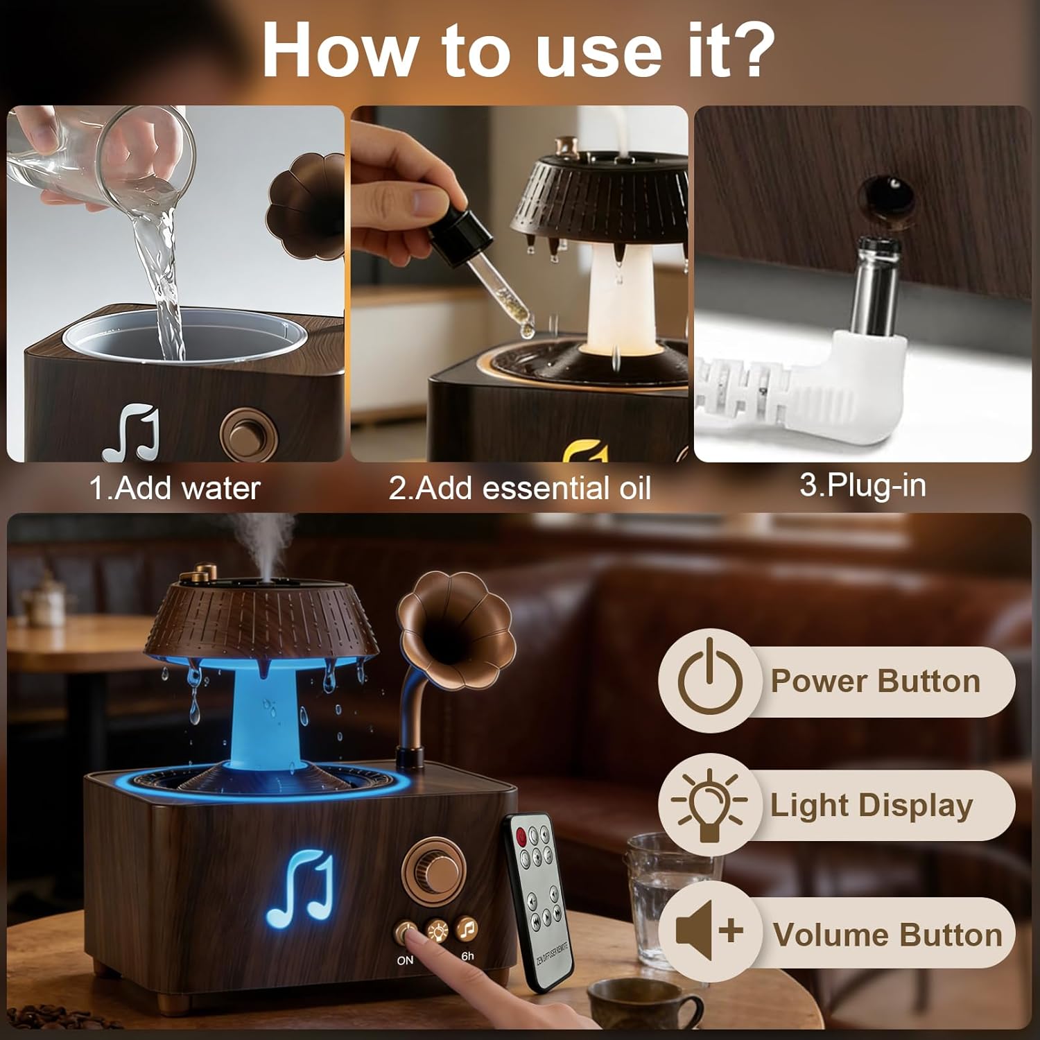 | Included Components | Diffuser *1, remote controler *1, charging cable *1, user guide *1, essential oil *2 |