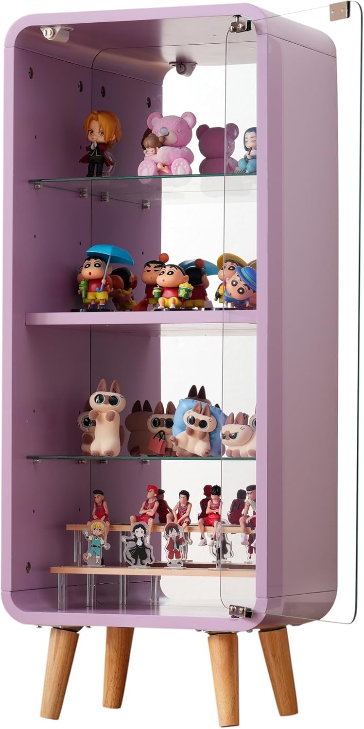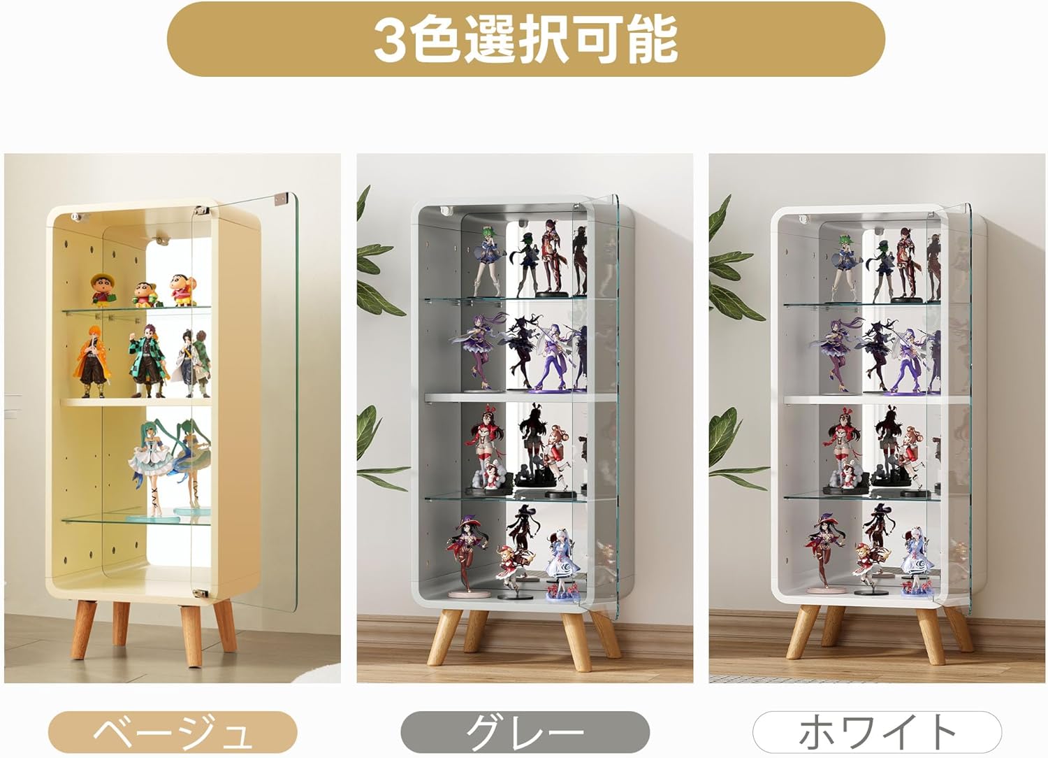 Made of tempered glass and MDF, this product has a load capacity of 11.0 lbs (5 kg), glass shelf board 4.4 lbs (2 kg), and bottom plate 11.0 lbs (5 kg). With three colors to choose from, you can find the perfect color for your room. The height adjustable glass shelf can be adjusted at approximately 2.6 inches (6.5 cm) intervals and has non-slip dowels for added support. The stylish design blends well with your decor and the rear mirror shows off your collection beautifully. The wide storage capacity is also attractive, so you can enjoy decorating a variety of items, from large figures to small items.