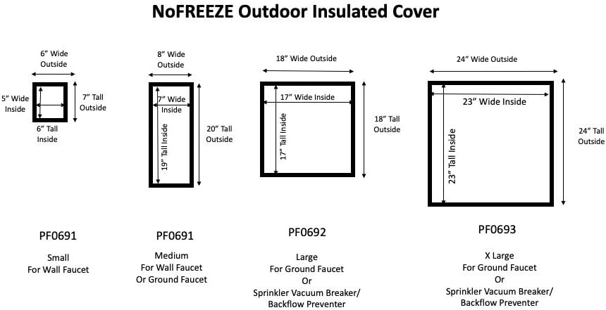 NO FREEZE Outdoor Faucet Insulated Cover (Extra Large) Protects outdoor faucets and sprinkler vacuum breakers from freezing by providing industrial grade insulation with water proof durable fabric. Preventing water freeze ups averts catastrophic failures and avoids expensive repairs. Installation is very simple - just slip on the cover onto the faucet and secure with Lock Tie String.