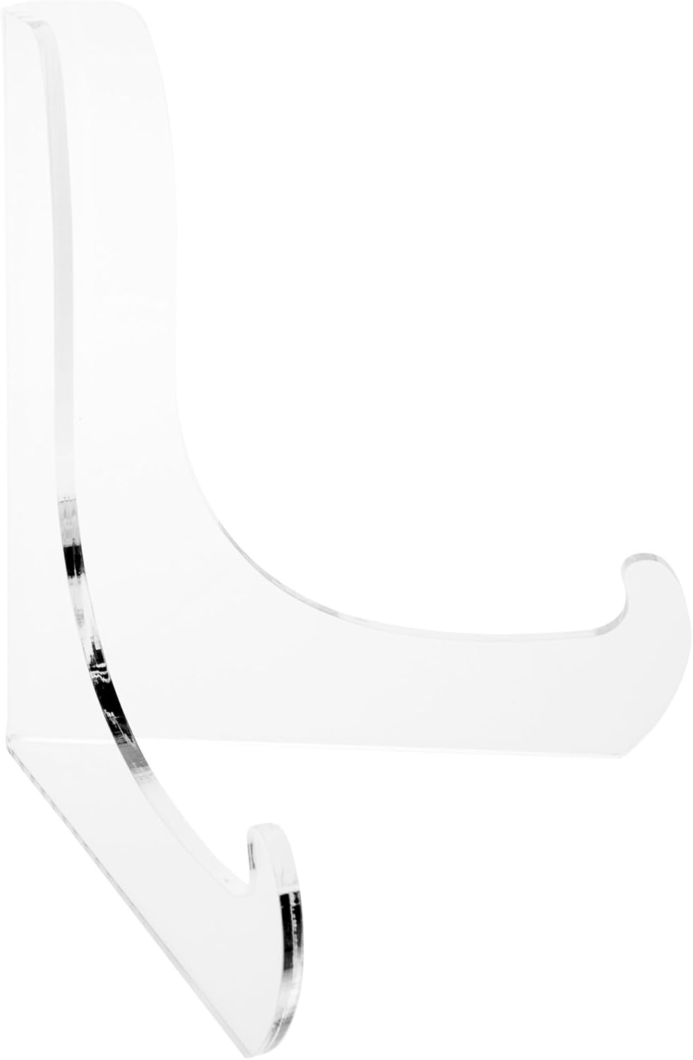 Plymor Clear Acrylic 60-Degree Angle Easel With Deep Support Ledges, 7.5" H x 7" W x 5.75" D (2 Pack)Size: 7.5 x 7 x 5.75 inches (height x width x depth)Style: Premium acrylic offers a clean, modern look for your display.What Size to Order? Begin by measuring the dimensions of the items you intend to display. Note the width, height, and depth of each piece. This will give you a clear idea of the minimum dimensions required for your display easel. Choose a stand that will hold your item securely while keeping the scale and proportion in mind.How to Use? These acrylic display easels feature long support ledges. This design works exceptionally well for plates, platters, or shallow bowls. With that in mind a shallow bowl will tilt slightly towards the back of the stand. This helps ensure your items are elegantly presented in various settings, including retail locations, trade shows, events, and home decor. This easel offers a professional and captivating presentation that elevates your items in various environments.Plymor Guarantee: Collecting Warehouse guarantees all Plymor products to arrive free of damage and defects.