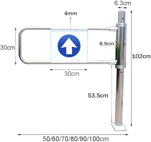 Introducing our versatile Industrial Swing Gate, expertly designed for various applications such as warehouse security, supermarket entrances, and pedestrian access points. This robust metal swing gate features a manual closing mechanism, making it an ideal solution for high-traffic areas like shopping malls, amusement parks, convenience stores, pharmacies, stations, garages, scenic spots, construction sites, and parking lots. Constructed from durable stainless steel, this gate not only guarantees longevity and strength but also adds a sleek, contemporary look to any entrance. With a height of 102 cm and customizable length options ranging from 50 cm to 100 cm, you can easily adjust the gate to meet your specific requirements. Installation is simple and straightforward, requiring only drilling for secure placement. **Key Benefits:** - **Durable Construction**: Crafted from high-quality stainless steel, ensuring it stands up to frequent use. - **Versatile Application**: Perfect for a wide range of settings, enhancing both security and accessibility. - **User-Friendly Design**: The gate can be manually opened and will close automatically, allowing for smooth foot traffic flow. **Package Includes:** - 1 Swing Gate **Please Note:** 1. The door can be configured for left or right orientation; refer to the images for installation guidance. 2. This gate is intended as a manual access point rather than an automatic induction door. 3. If the swing arm length exceeds your needs, it can be easily shortened. Elevate your facility's security and accessibility with our Industrial Swing Gate—an ideal choice for modern environments.