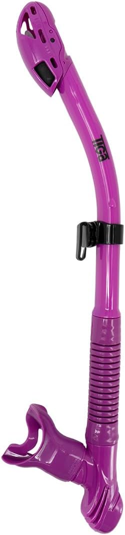 The Sherwood Tiga Snorkel is one of the best Dry Snorkels in Diving, and is a Scuba Lab's Tester's Choice Award Winners. The Tiga provides hours of comfortable safe snorkeling. The Tiga's dry valve quickly closes to keep the water out but opens just a quickly to allow fresh air in. And if any water does by chance enter the tube the large reservoir keeps the water away from your breathing and can be quickly expelled through the highly efficient silicone purge valve. The Quick Disconnect Snorkel Keeper connects to your mask in one click.