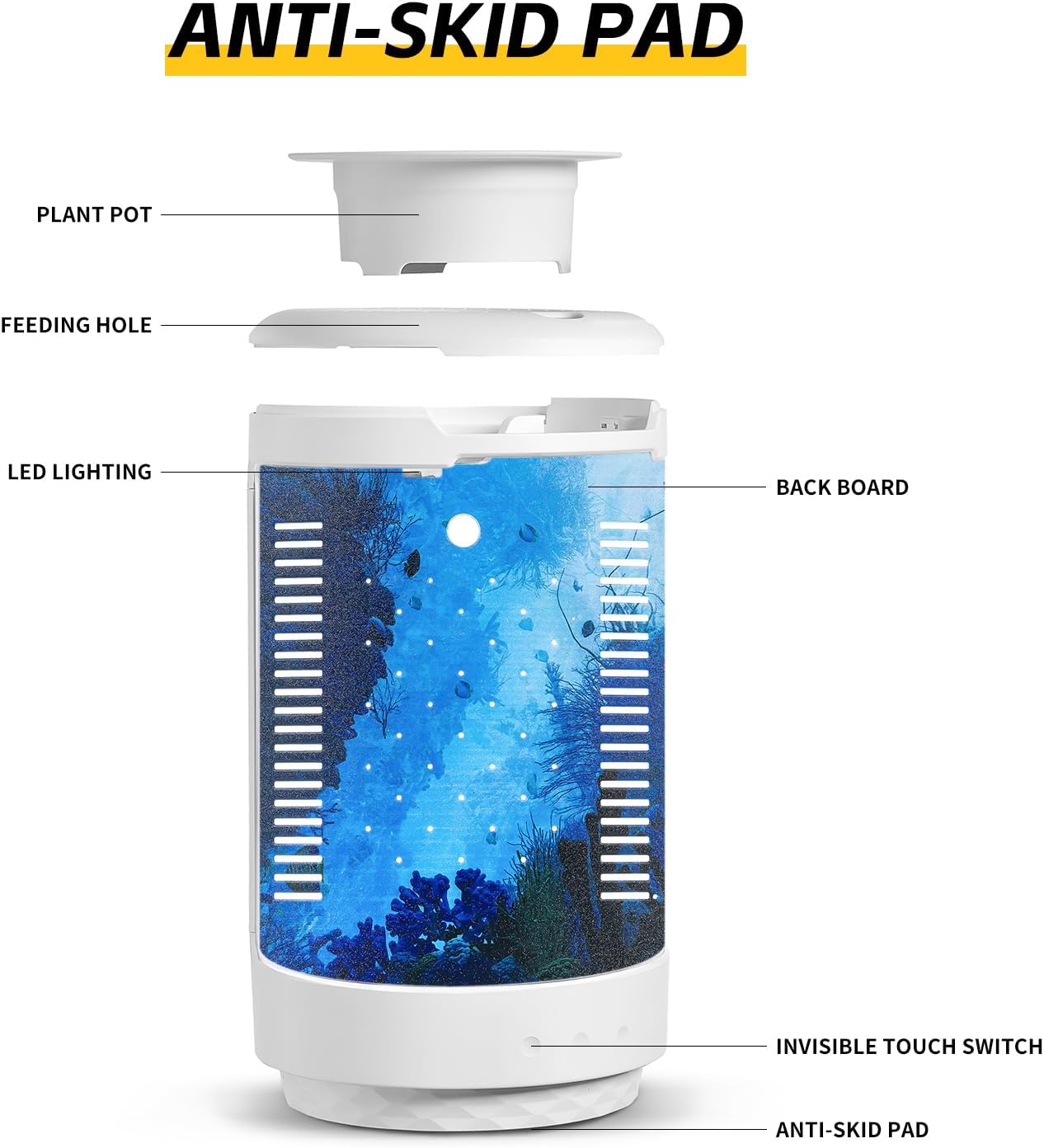 | Included Components | Filtration system, LED light, feeding port |