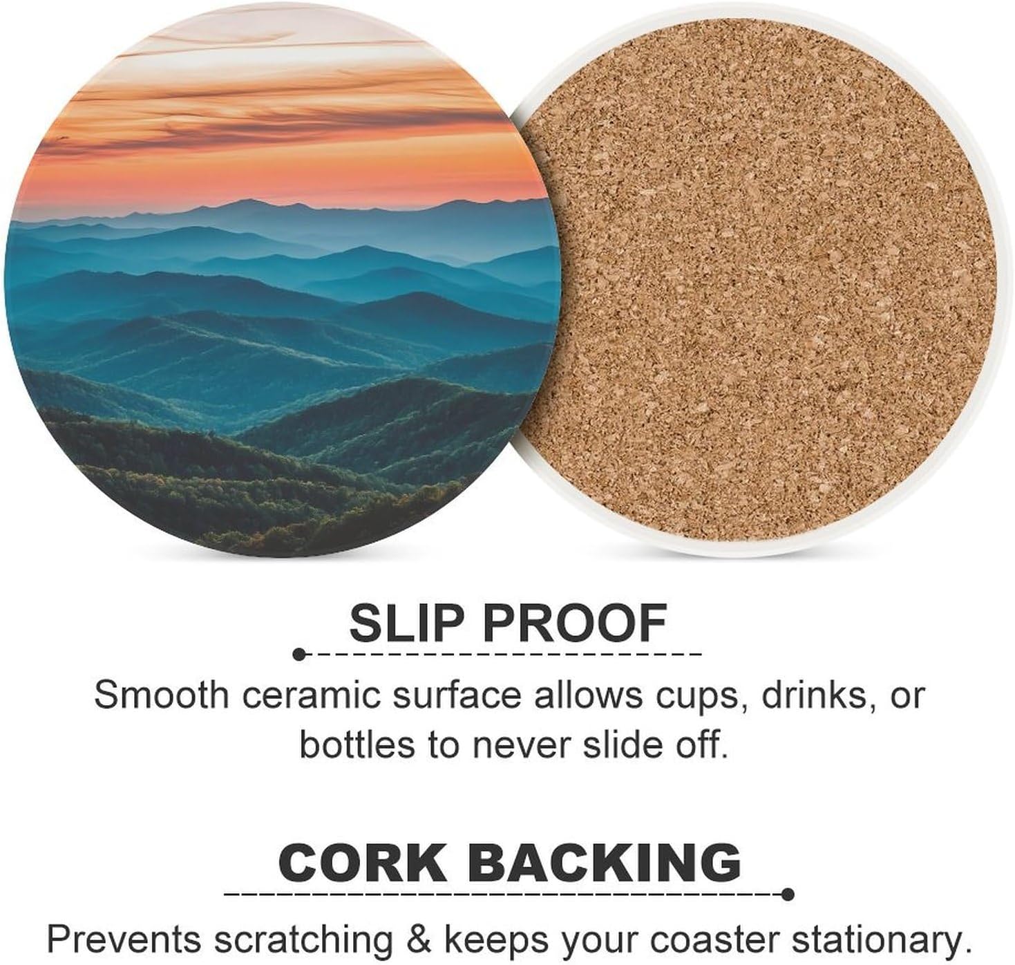 coasters,coasters set of 4,coasters set of 6,cute coasters with Funny Pattern Printed Ceramic Coasters with Cork Base Cup Holder Absorbent for Drinks Coasters Round Tabletop Protection Mat Decorative Cute Coffee Cup Beverage Coasters