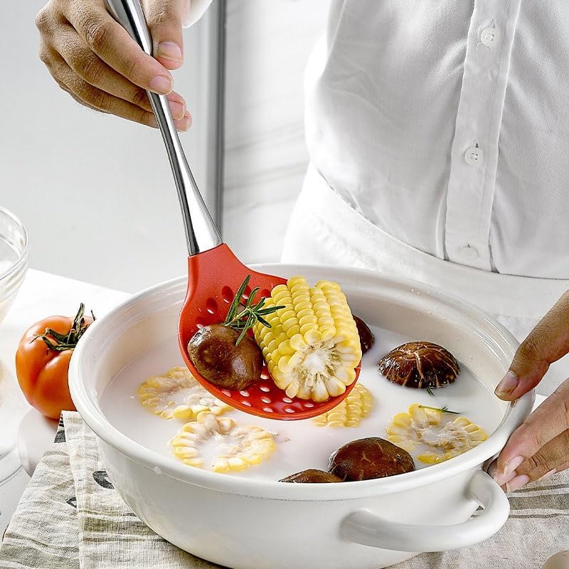 `: Spoon and Spatula SetMaterial: Silicone + carbon steelSize: As shownColor: As shownFunctions: Cooking, baking.The set includes: Frying spatula, spatula, soup spoon, strainer, etcShoulder bag: Shovel and spoon set * 1 set (excluding display items)Attention:1. Please allow 1-2cm error due to manual measurement. Thank you.2. The actual color of the product may be slightly different from the image shown. Please refer to the actual product.Investing in a handy set of spatulas can significantly enhance the smoothness and enjoyment of cooking.
