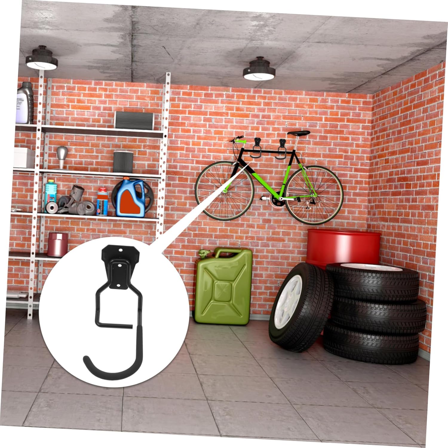Package List 4pcs x garage hook Characteristics -Material:Iron utility hooks for tools -Stylish appearance: the sleek and modern design complements various garage styles, adding of sophistication to your bicycle wall storage hooks -Spacesaving wall mount: the wall mounted design optimizes garage space, allowing for efficient organization and easy access to your tools and bicycles lawn equipment storage hooks -Color:Black bike hooks for garage -Durable iron construction: crafted from sturdy iron, these hooks are built to last, offering reliable support and stability for heavyduty storage needs wall mount tool organizer -Multifunctional design: designed for garage wall storage and bicycle display, this versatile rack accommodates various tools and items, making it a practical addition to any garage heavy duty bike rack hooks -Ample hanging capacity: this rack provides sufficient space to hang multiple bicycles or other simultaneously garage bike hooks -Size:16.00X14.00X8.00cm/6.29X5.50X3.14in heavy duty hooks for garageGoods Informationbike rack hooks Their sleek design ensures they blend seamlessly with any decor while maximizing vertical space for organized storage.garage bike rack Crafted from durable iron, these wall-mounted garage hooks are designed to securely hold bicycles and various tools, offering a practical storage choice for your garage or workspace