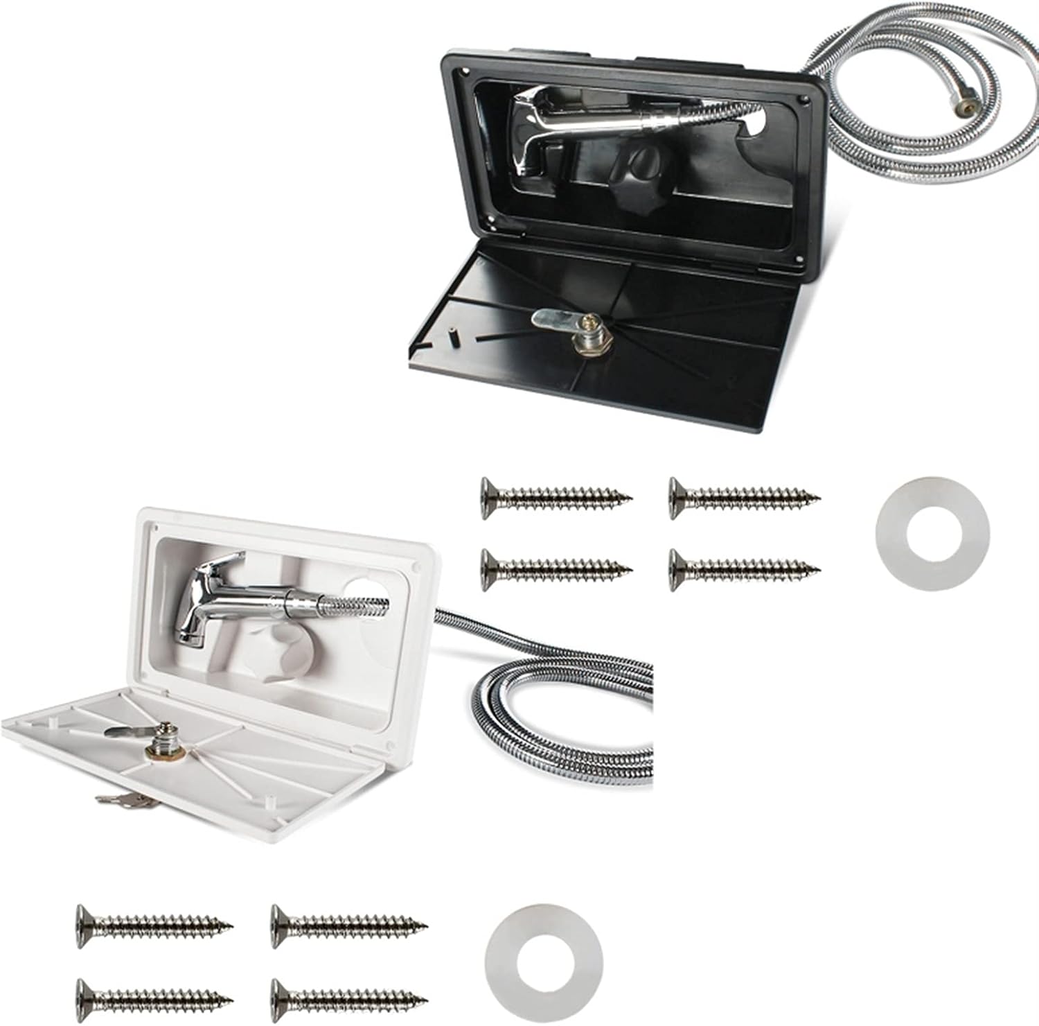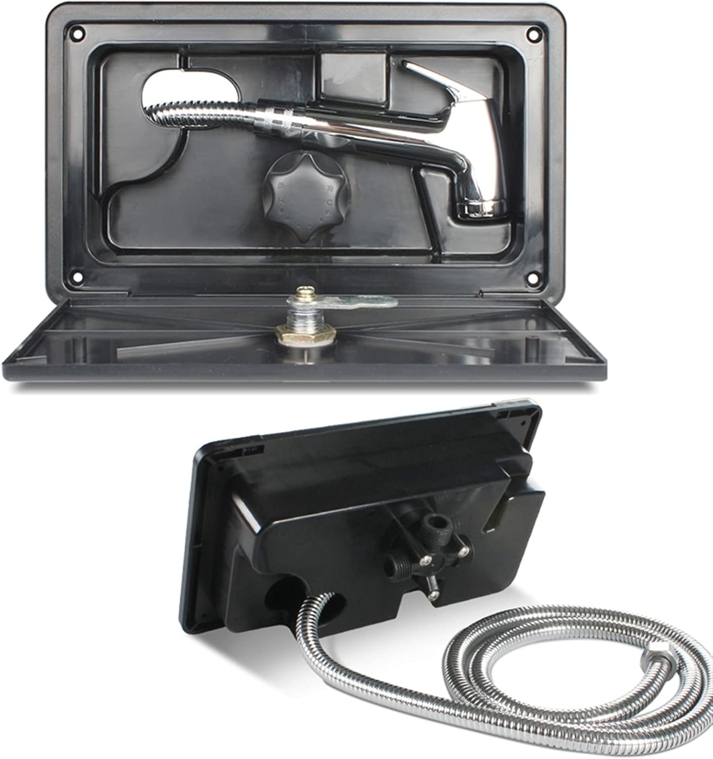 Specifications: Material:ABS Color:White/Black Fit hole size:231x117mm Overall Size:267x157x115mm Quantity: 1 Set Note: 1.Transition: 1cm=10mm=0.39inch 2.Please allow 0-3cm error due to manual measurement. pls make sure you do not mind before you bid. 3.Due to the difference between different monitors, the picture may not reflect the actual color of the item. Thank you! Package includes: (Without retail package) 1 Set x RV Exterior Shower