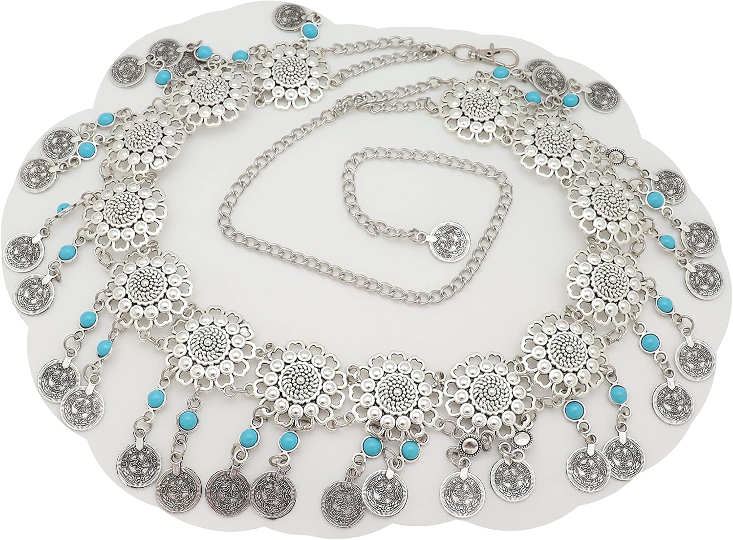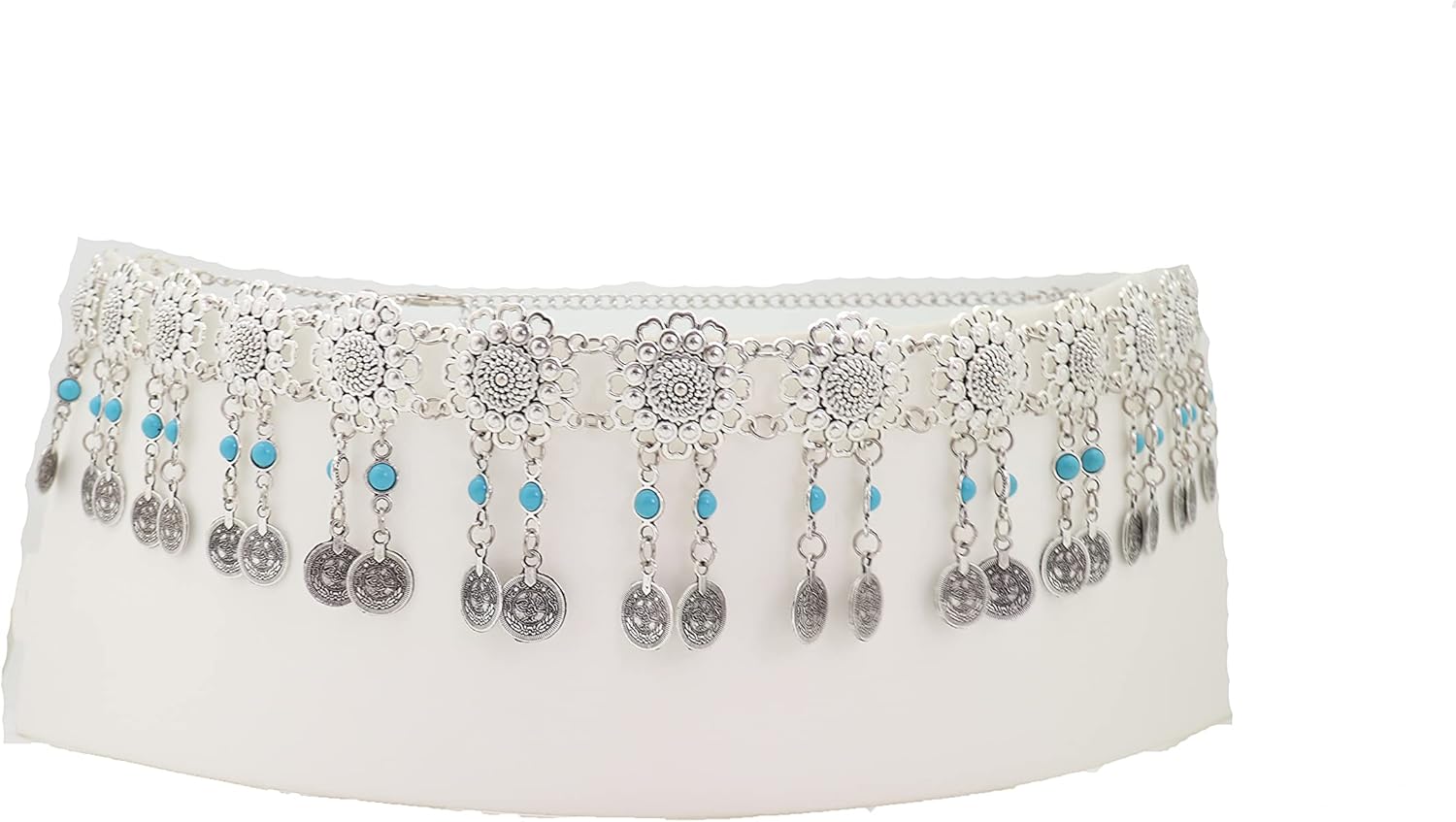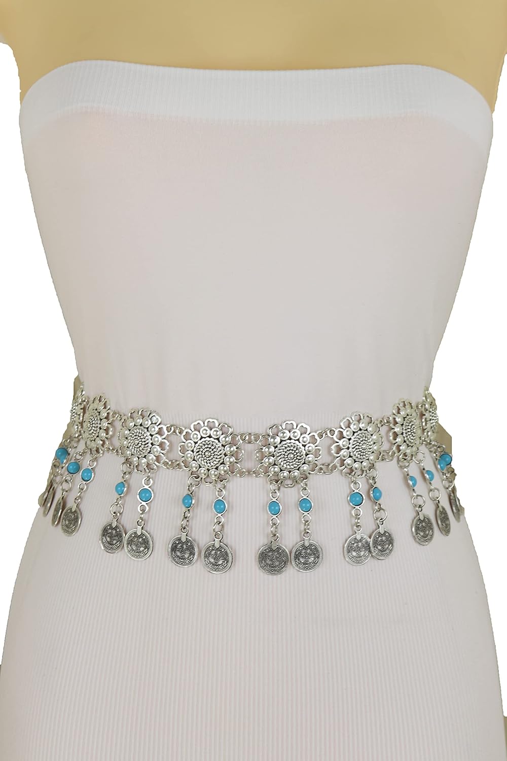 Women fancy chic fashion bohemian style belt Brand New Trendy Urban Women Ethnic Style Waistband Spring Summer Winter Fall Modern All Year Around Collection Ladies Fashion Feminine Newest Style Sexy Popular Premium Belly Dance Belt - Celebrity perfect for day or night weekend classic look or happy party time Brand new sexy fun and edgy fashion special and unique stylish belt Ladies Fashion Fancy Casual Dressy Style Bling Belt Special Style Basic Day Classy Night Evening Clubbing Party Or Work Fashion Belt Style : Fashion / Waist or Hip Condition : Brand New Color : Silver metal chains and charms waistband + turquoise blue beads Size: One Size Belt - Adjustable Can Fit Size Small - Medium Waist Size: About 29" - 42" Belt Width : About 3 2/8" wide Very Special Vintage Fashionable Belt Beautiful For Every Day And For A Going Out Night. TENEMOS SERVICIO EN ESPANOL.