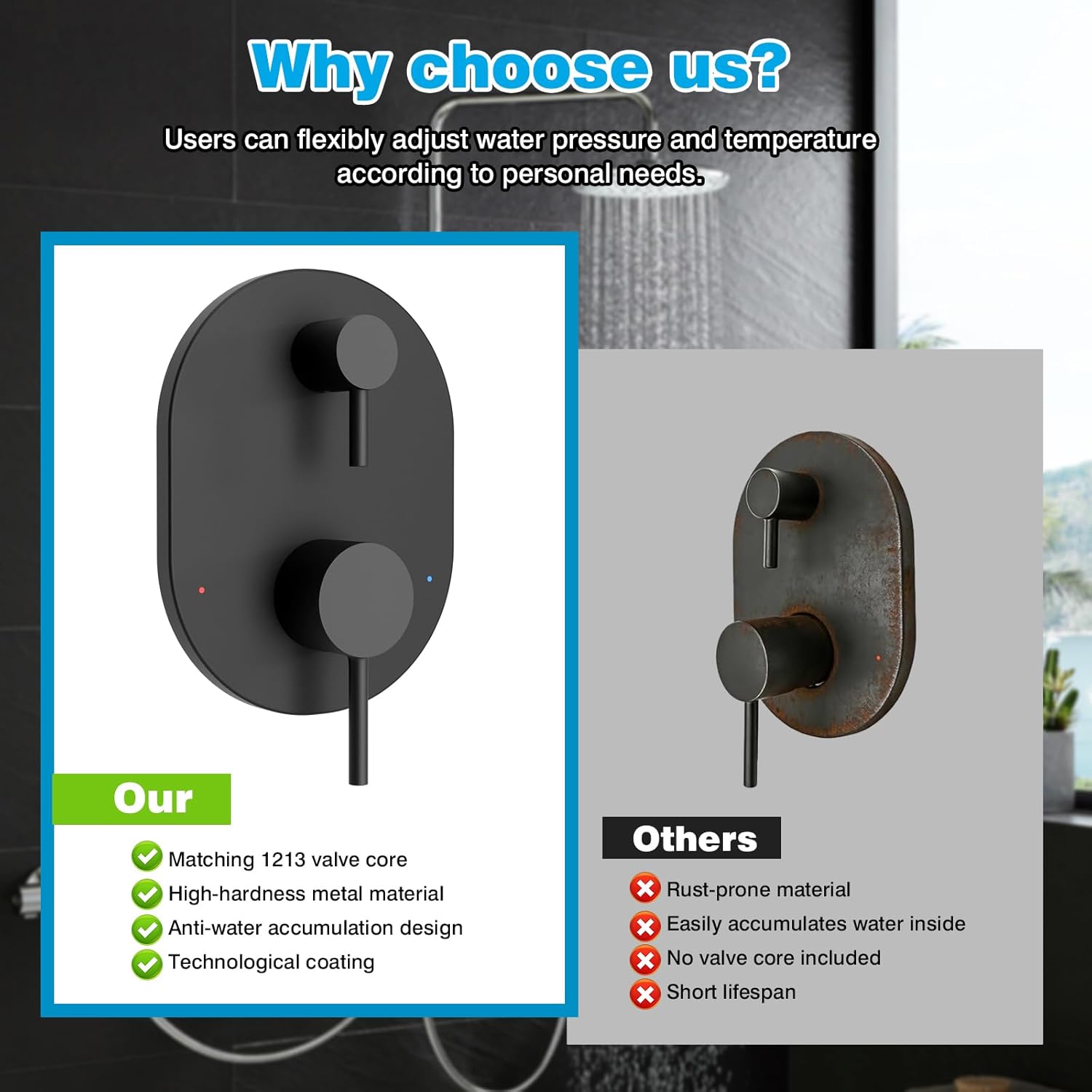 UT3290BL Matte Black Shower Valve Trim Kit for Moen Align M-CORE 3-Series 2-Handle Shower Faucet, W/1213 Cartridge, Compatible with Moen U232 U362 M-CORE Mixing Valve, Valve Required
