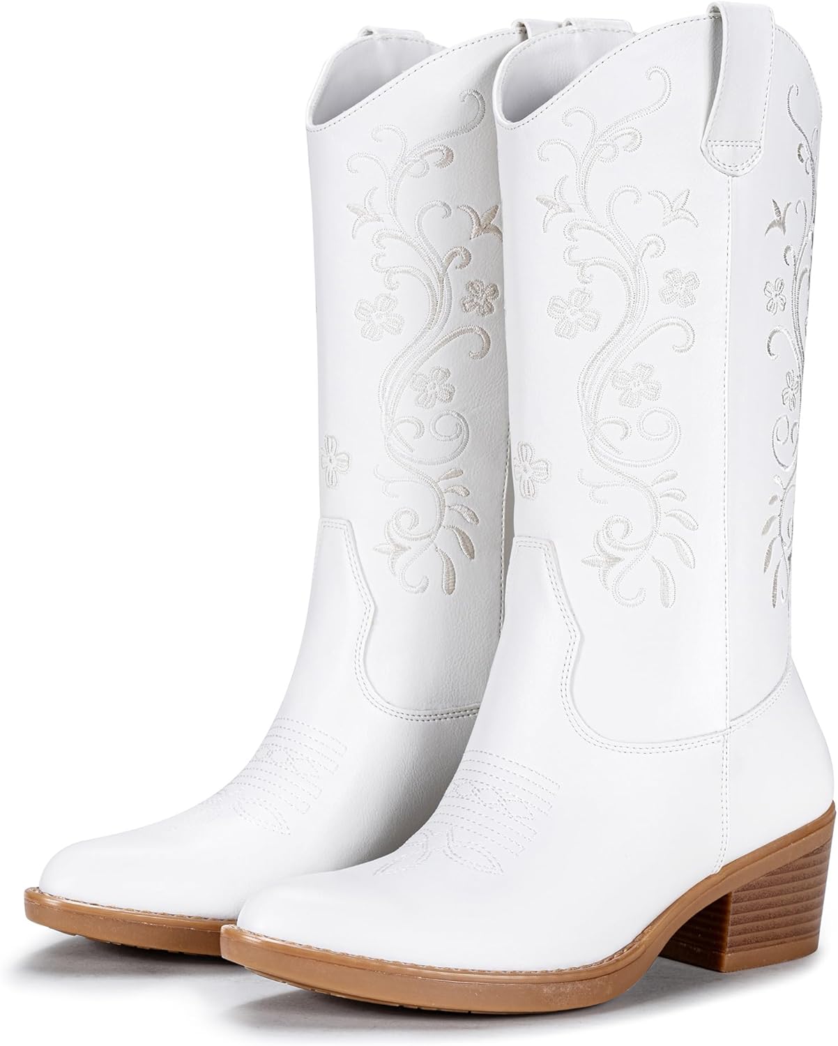 | Style Name | Women Cowboy Pointed Toe Boots Western Mid-calf Cowgirl Pull on Chunky Heel Embroidered Boot |