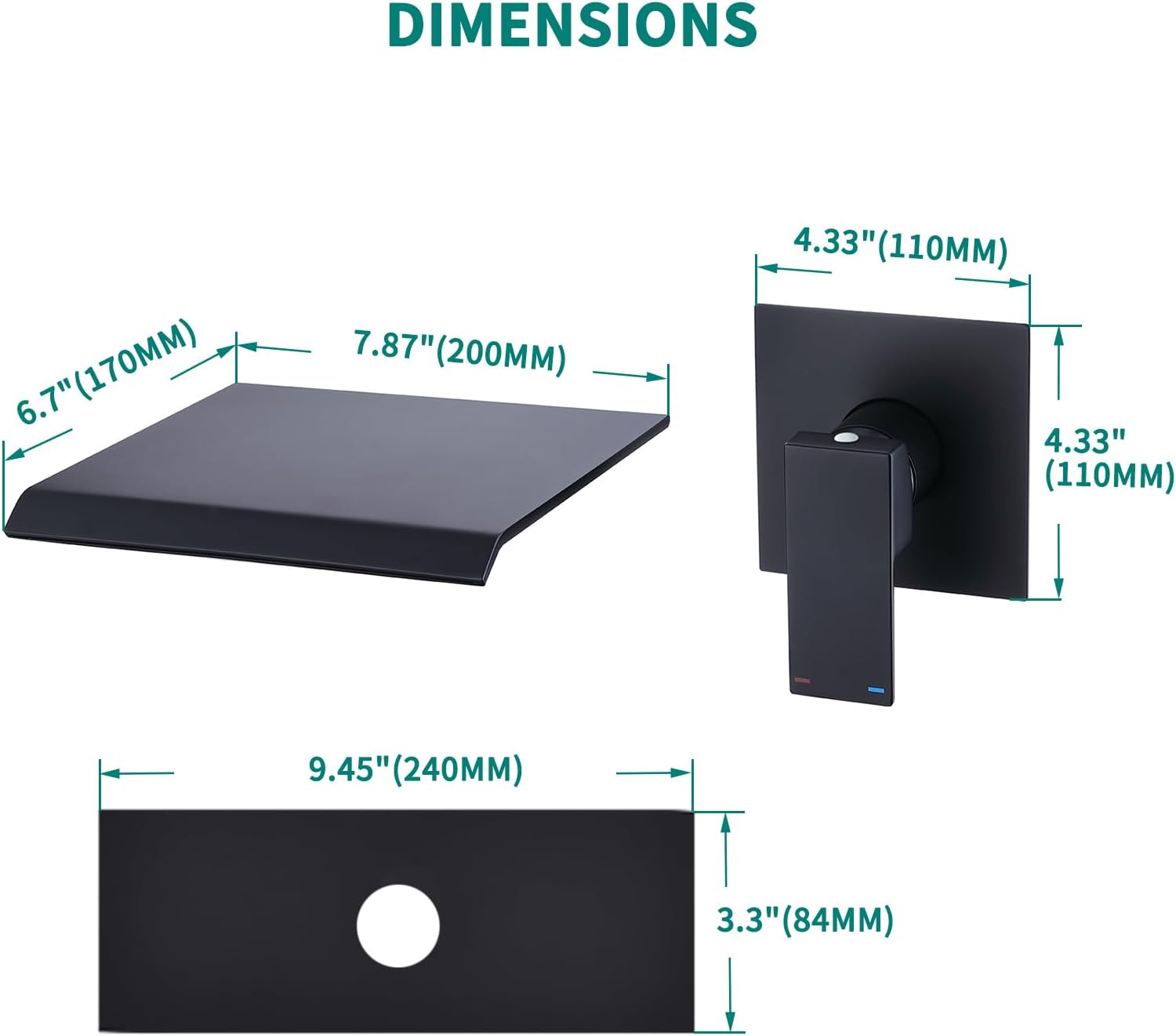 | Included Components | Valve x 1, Handle x1, Spout x 1, Valve Cover Plate x 1,Spout Cover Plate x 1,Teflon Tape x 1, Installation Hardware, Installation Instructions |