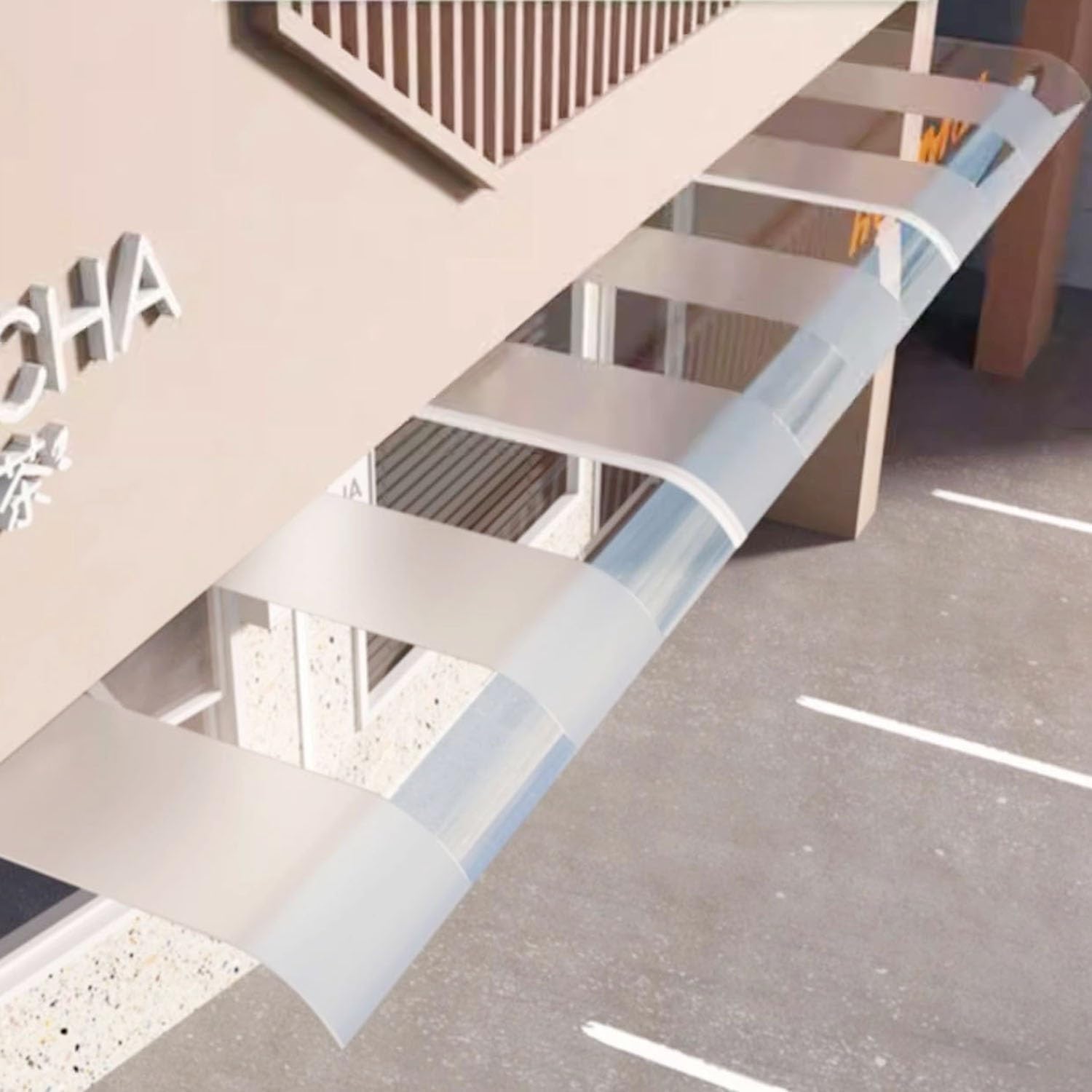 High-quality awnings have simple and smooth lines, and the transparent material flashes a smart luster in the sun. While being highly practical, they are also artistic embellishments in the space, highlighting the unique style of modern fashion and natural fusionSpecifications:Name: Door and window awningsMaterial: polycarbonateThickness: 3.5mm thicknessWeather resistance: can withstand high and low temperatures without deformationImpact resistance: can block falling objects from high altitudesMain uses: block ultraviolet rays, block rain and snow, and block windCommon scenarios: terraces, balconies, front doors, back doors, side doors, windows, porches, entrances, store doorsLength against the wall: 40-300cmDistance from the wall: 34/44cm