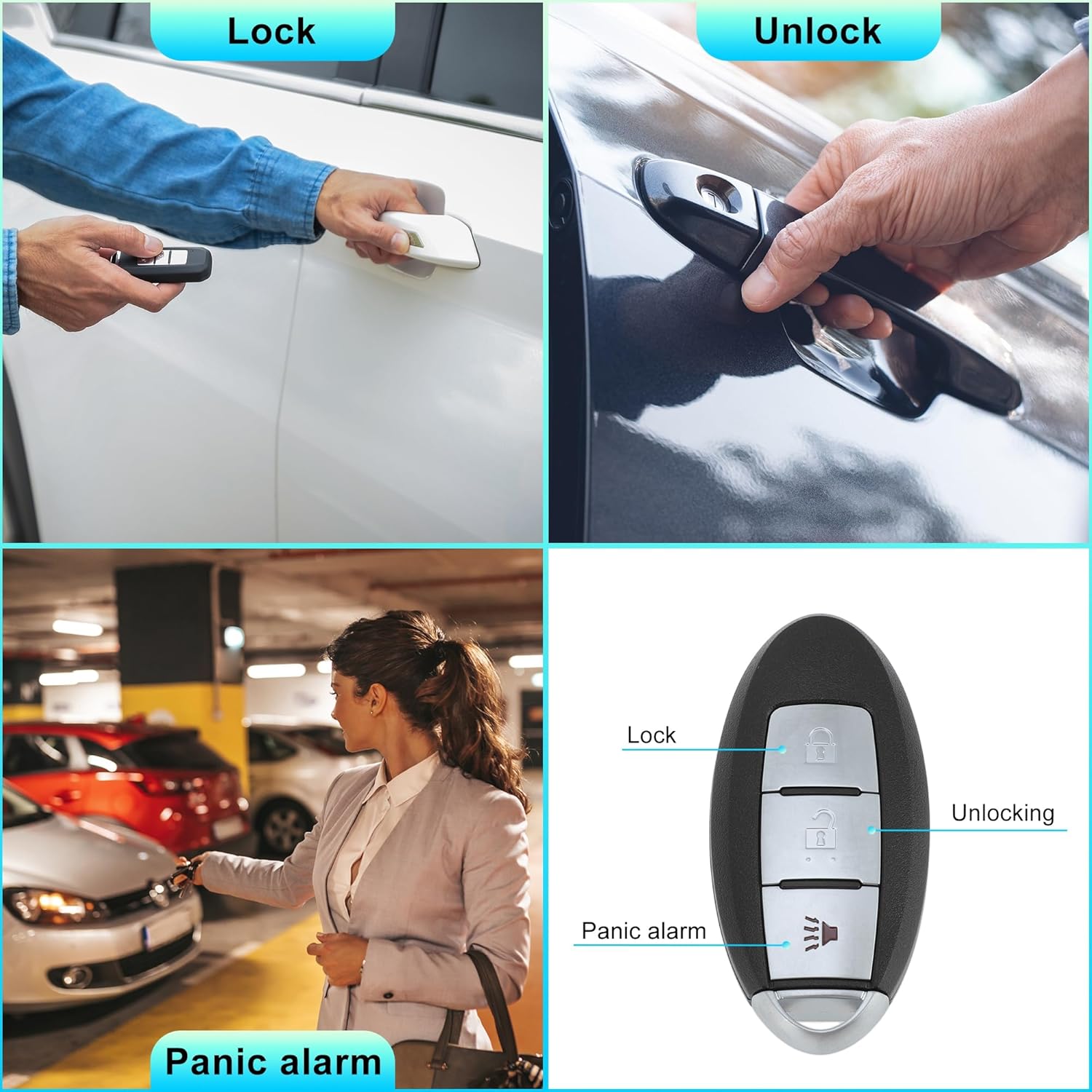FCC ID:KR5S180144106OE Number:285E3-4CB1A/285E34CB1A/285E3-4CB1C/285E34CB1CFitmentfor Nissan Rogue 2014-2018Specification of Keyless Entry RemoteCondition: Brand NewFCC ID:KR5S180144106Frequency: 433MhzButtons: 3 ButtonsChip ID: 4AColor: Black, Silver TonMaterial: Plastic, MetalSize:7.3x3.4cm/2.87x1.34inThis is a non-OEM product, accessory only!Include 1x Keyless Entry Remote Key fobFeatures of Car Key FobKeyless entry remote is constructed with Plastic,sturdy and durable.Replace your lost or broken remote car key fob quickly and easily.Each car key replacement comes complete with batteries.Note of Programming:This remote must be programmed and cut by a qualified locksmith or dealership.1. Please make sure the remote programming can work to your vehicle before asking the locksmith to cut the key. Don't wait for him to cut the key and find that it does not work, which may make a loss.2. If the locksmith declares that the key is purchased online or is not an old part, or other reasons to cause it can't work normally. I suggest you replace other locksmiths to program.How to Replace Key Battery?Take out the key and use the tip of the screwdriver as a tool to open the back case, replace the same battery carefully. You can use a clean cloth to clean the battery in case some dushes existed.Package Included:2 x Car Keyless Entry Remote (Battery Included)